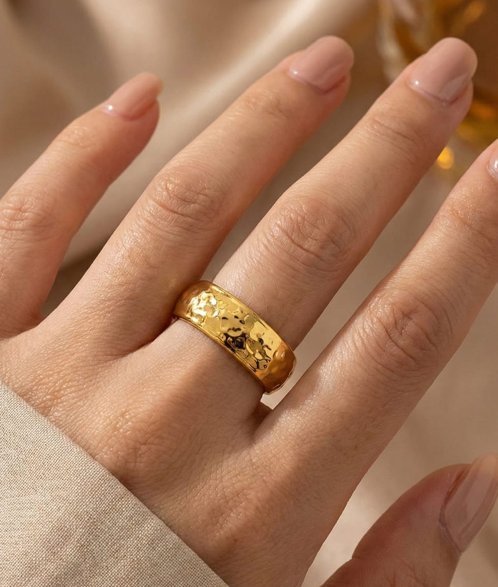Elevate your elegance with our Bold Golden Ring, meticulously crafted to exude sophistication and designed with an anti-tarnish finish for lasting brilliance. At Lavish Jewellery, we pride ourselves on delivering exceptional quality and timeless beauty in every piece. This statement ring not only complements any attire but also embodies our commitment to excellence and luxury. Discover the perfect blend of style and durability with our Bold Golden Ring Anti tarnish. Indulge in a piece that is as enduring as your sophisticated taste.