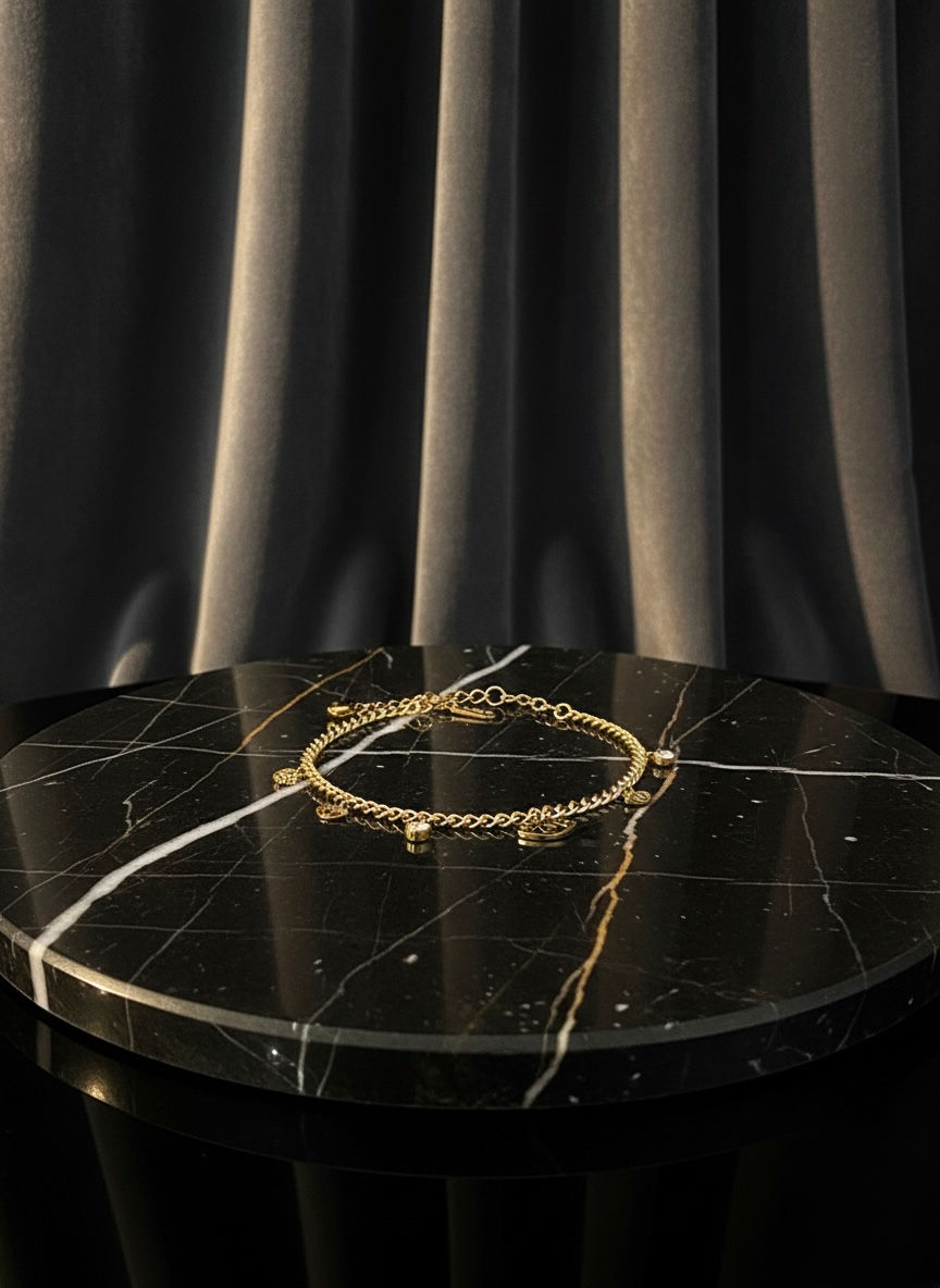 Discover the allure of the Mystic Eye Charm Bracelet, exclusively at Lavish Jewellery. Crafted from premium stainless steel and elegantly gold plated, this piece is not only stunning but also skin safe and anti tarnish, ensuring it maintains its lustrous finish. Perfect for sensitive skin, our bracelet adds a touch of mystical elegance to any outfit, embodying the high-quality craftsmanship Lavish Jewellery is renowned for. Enjoy a luxurious accessory designed to elevate your style effortlessly.