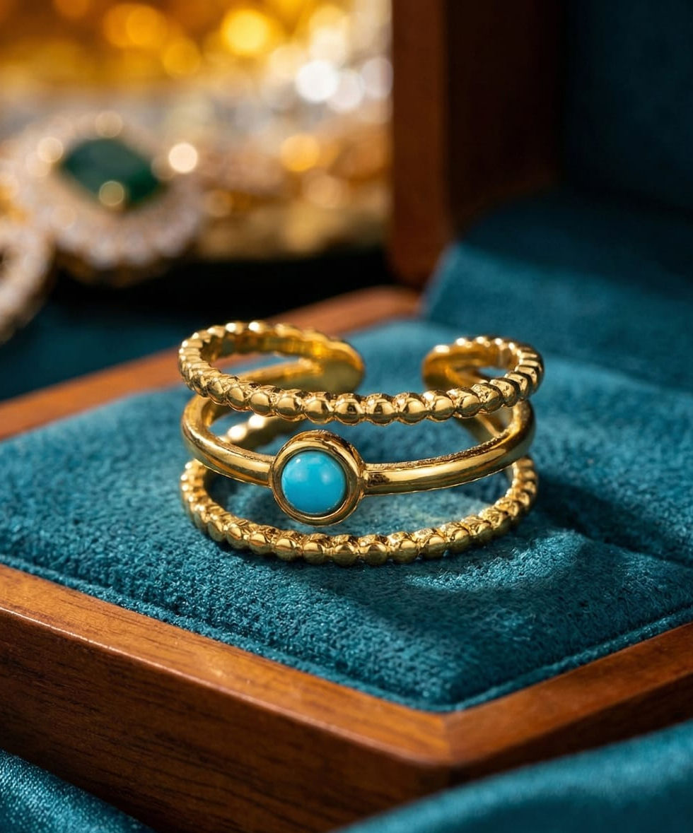 Elevate your elegance with The Trinity Turquoise Ring, an exquisite piece designed to captivate. At Lavish Jewellery, we prioritize not only beauty but also durability; that’s why this stunning ring is meticulously crafted with anti-tarnish properties. Adorned with a vibrant turquoise gemstone, this ring seamlessly blends tradition with modern sophistication. Perfect for any occasion, it’s a timeless addition to your collection. Experience the blend of quality and luxury that Lavish Jewellery is renowned for with The Trinity Turquoise Ring anti-tanish.