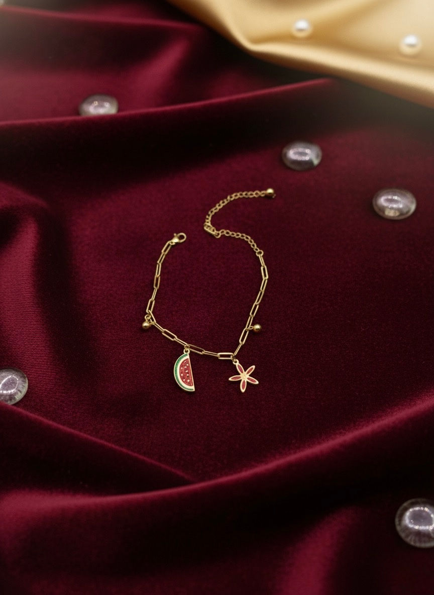 Experience the timeless elegance of the Watermelon Breeze Bracelet from Lavish Jewellery. Crafted from premium stainless material and gold plated for a luxurious finish, this bracelet offers a sophisticated touch to any outfit. Designed to be anti-tarnish and skin safe, it ensures exceptional durability and comfort for daily wear. Elevate your accessory game with this must-have piece that flawlessly combines style and quality.